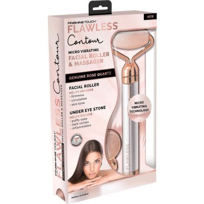 Flawless contour, le nouveau rouleau vibrant masseur pour le visage, avec le quartz rose, est conçu pour aider et stimuler la circulation et favoriser la production de collagène, et aide à réduire l'apparence des ridules.
