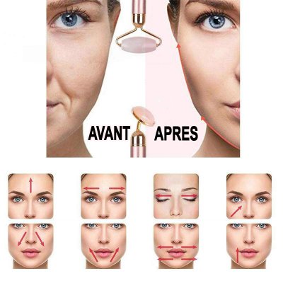 - Véritable tête de rouleau en quartz rose et presse sous les yeux
