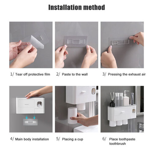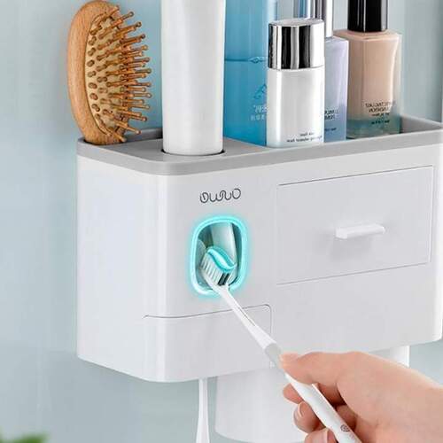 يأتي حامل فرشاة الأسنان هذا مع عصارة معجون أسنان شبه أوتوماتيكية. يقوم الموزع بضغط الكمية المثالية في كل مرة ، مما يمنع إهدار معجون الأسنان.
