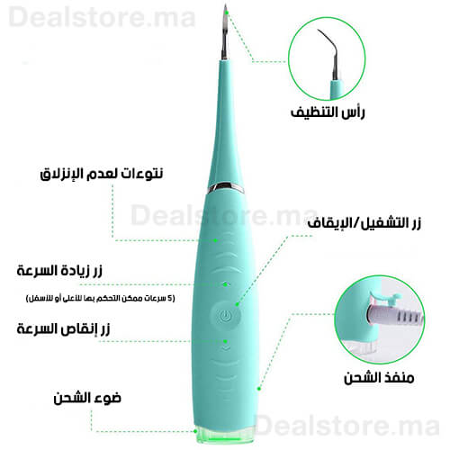 أداة لتنظيف الأسنان بتقنية الموجات فوق الصوتية، تعمل على إزالة تراكمات الجير و التخلص من البكتيريا و اصفرار الأسنان في ثوان، لتوفر لك نتائج ملحوظة من الإستخدام الأول.
