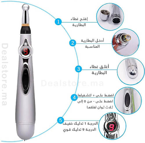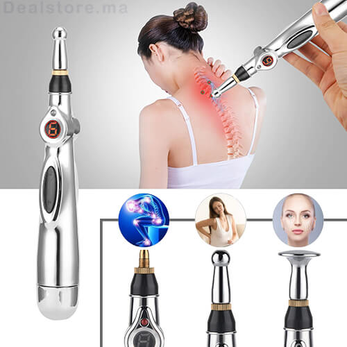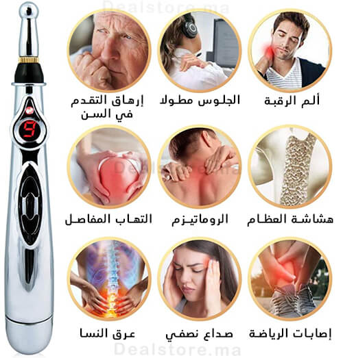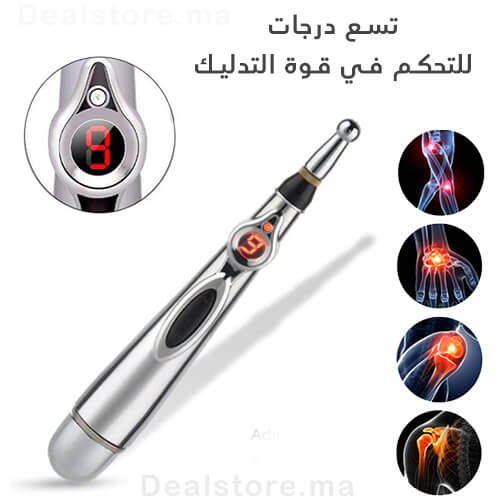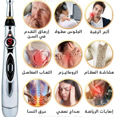 قلم التدليك الإلكتروني، يستخدم بناء على نبضات كهربائية تعمل على تحفيز نقاط الألم المعينة في الجسم، لتسمح بذلك بتعزيز جهاز المناعة لمعالجة الاختلالات الصحية و تخفيف الأوجاع المختلفة.