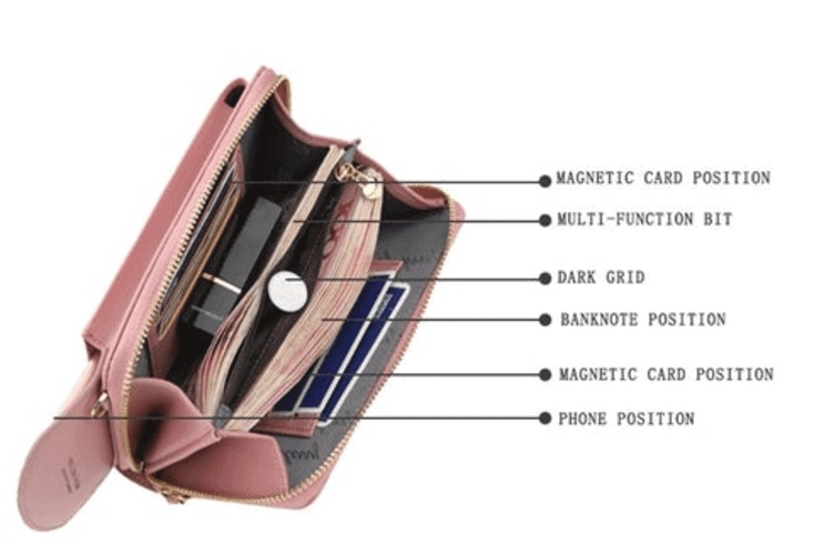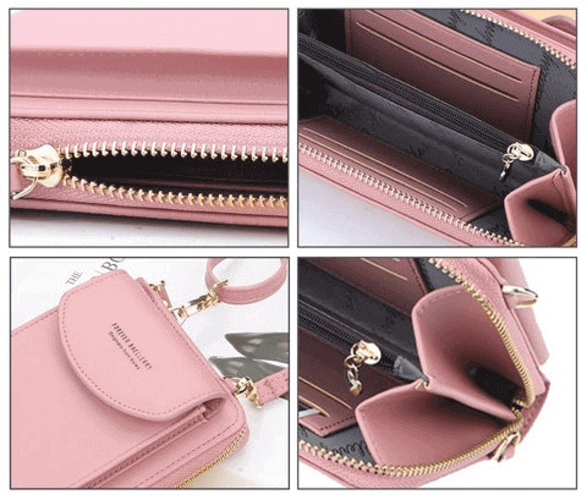 هذه الحقيبة مصممة لاحتواء الهواتف المحمولة والنقود والبطاقات وغيرها من العناصر الصغيرة التي تحتاجين لحملهما معك. يمكنك ببساطة حملها كحقيبة يد أو وحملها على كتفيك.