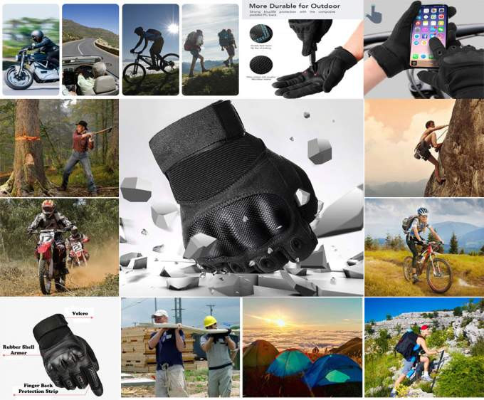قفازات مثالية صالحة للإستعمال في عدة أعمال مثل سياقة الدراجات العادية والنارية، استخدامها في رحلات الاستكشاف والتخييم، مناسبة للعسكريين وأثناء التدريبات الرياضية.