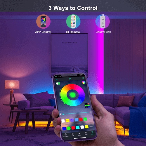 تم تجهيز أضواء الشريط LCD دائمًا بتطبيق للتحكم عن بعد، من الممكن تشغيل أو إيقاف تشغيل مصابيح LCD وتغيير الألوان أودرجة السطوع بإستخدام تطبيق عبر الهاتف.