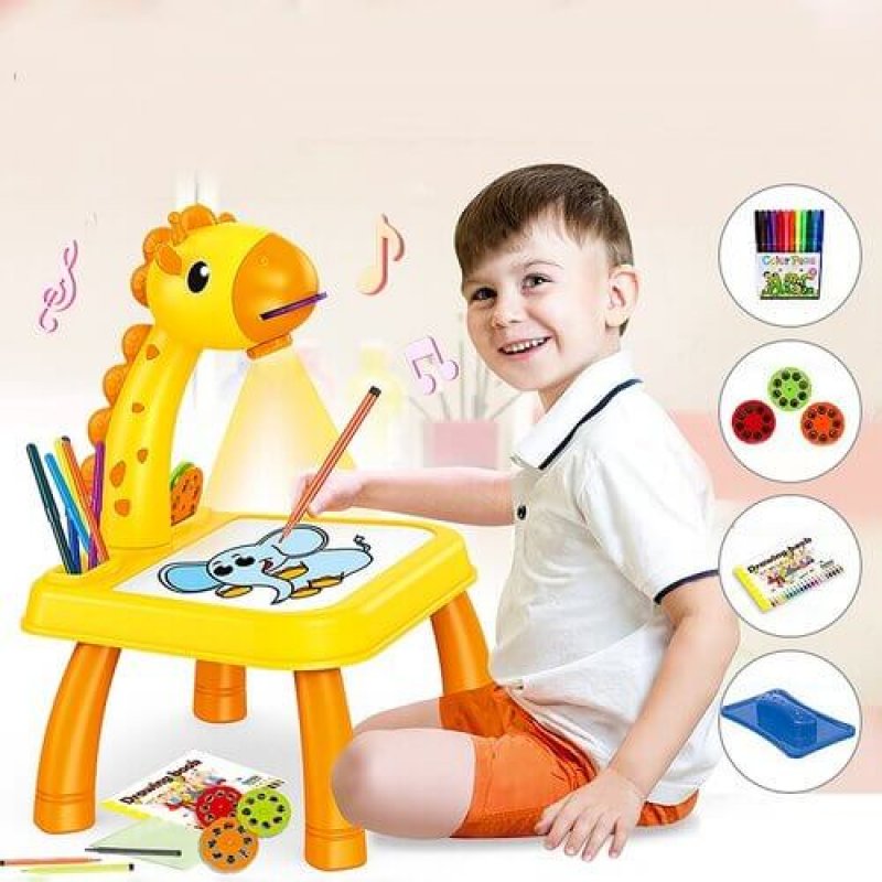 وفرنا لك اللعبة الأكثر مبيعا 3 في 1 فهي طاولة و جهاز لعرض الصور و لوحة للرسم. ستساعد أطفالك على تعلم مهارة الرسم والتلوين بكل سهولة من خلال إسقاط الرسومات على لوحة الرسم وتتبع الرسمة.